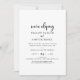 Cette invitation de réception de mariage en fuite avec un script rustique est parfaite pour une fête de mariage en fuite à la campagne. Le design simple et moderne en noir et blanc présente une calligraphie manuscrite fantaisiste unique avec un style bohème minimaliste contemporain. Personnalisable dans n'importe quelle couleur. Gardez le design minimal et simple, tel quel, ou personnalisez-le en ajoutant vos propres graphiques et illustrations. Les cartes de RSVP sont vendues séparément, ou vous pouvez ajouter les informations de RSVP au verso de la carte.