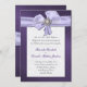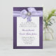 Faire-part de mariage élégant fait dans une damassé pourpre foncée riche, avec un beau secteur blanc des textes de style de damassé. Les graphiques d'un satin de lavande comme l'arc avec un bijou de perle décorent le dessus, de l'invitation. Le texte de manuscrit dans gris-foncé et le pourpre est entièrement personnalisable pour adapter à vos besoins.