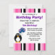 Invitation pourpre de partie de pingouin de rose mignon d'anniversaire