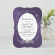 L'invitation nuptiale chic de douche, faite dans un pourpre a gravé regarder en refief le motif de damassé, avec un cadre argenté décoratif de ton, autour du secteur ovale blanc des textes. Personnalisez tout le texte pour adapter à vos besoins d'événement. A choisi le de carte vous veulent et la forme d'invitation que vous aimez le meilleur.