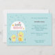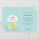 Invitation unisexe de baby shower. Mignon et amusement. Caractéristiques maman et poussin de bébé tenant un parapluie sous une pluie légère. Couleurs en pastel douces appropriées pour tout genre. Moder et bonbon.