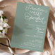 Pratique rend parfait ! Fêtons la soirée de répétition de notre couple préféré avant le grand jour avec cette élégante invitation à dîner de répétition amusante, ludique et simple avec un script amusant dans le vert à l'eucalyptus sauge.