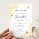 Floral Honey Bee First Bee day Anniversaire Invitation Soupe ou miel bee thème de premier anniversaire invitation pour une petite fille avec des arrangements floraux principalement jaunes et de jolies bourdons abeilles.
