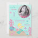 Petite carte d'invitation pour le premier anniversaire de sirène avec des créatures sous-marines.