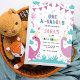 Invitation Premier Anniversaire Dinosaure rose foncé et clair