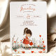 Cultivez la joie de grandir avec notre "Petite Invitation Fleur sauvage d'Anniversaire". Sur le devant, une jolie illustration d'une petite fille dans une robe de pois rouge arrose tendrement un jardin de fleurs sauvages vibrant, symbolisant la croissance et la beauté naturelle. Le dos est orné de lettres joueuses et aux tons terre qui se marient harmonieusement avec le thème fantaisiste du jardin. La douce aquarelle dans le beige doux offre une toile de chaleur, invitant vos invités à célébrer la première floraison de la vie avec votre petit.