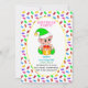 Premier bébé anniversaire mignon et elfe bébé avec bonbons multicolores sur blanc arrière - plan Party Invitation.