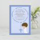 Commencez votre événement outre de la droite avec notre première invitation de sainte communion de chapelet mignon et doux. L'invitation comporte un chapelet bleu avec le graphique de garçon de brune. Facile à customiser, ajoutez juste votre photo et les informations sur l'événement et vous êtes tous placez pour aller. conceptions de ©Zenware