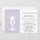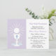 Une première invitation de communion avec le calice blanc, l'eucharistie avec des rayons avec la croix bleue et les accents de couleur. L'arrière - plan est un lilas mou avec un motif subtil. Créé avec le graphique par zhaolifang/vecteezy.