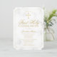 Invitation tes invités à la première communion sainte de ton fils avec cette carte d'invitation élégante. Ce modèle design présente un arrière - plan en marbre blanc et gris avec une simple fausse croix d'or en haut et les détails de votre célébration ci-dessous dans une élégante typographie de script en faux or pour vous permettre de personnaliser. Sur le dos de la carte se trouve du marbre blanc. J'ai adoré concevoir cette invitation pour vous. Bon appétit ! Conçu par l'artiste ©Susan Coffey.
