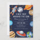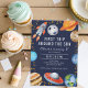 Un espace thématique 1er anniversaire invitation qui peut être personnalisée avec l'inclusion des détails de votre fête d'anniversaire de petit. La conception comprend de jolies planètes aquarelles, des étoiles et un navire-fusée. L'arrière de l'invitation est accompagné d'un mignon motif de fusées.