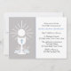 Une invitation de la Première Communion à la craie blanche, Eucharistie aux rayons, croix bleue et raisins accentués en bleu. Le arrière - plan est un gris doux avec un motif subtil. Créé avec le graphique de zhaolifang/vecteezy.