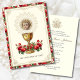 Célébrer le sacrement de la première sainte communion est une occasion merveilleuse. Cette invitation traditionnelle catholique vintage à la première communion traditionnelle partage la beauté de la sainte Eucharistie et de l'Enfant Jésus accentué de roses rouges. Tous les textes et polices peuvent être facilement modifiés.