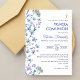 Célébrez le jour spécial de votre fils avec cette élégante invitation de première communion, mettant en vedette de jolies fleurs bleues sauvages et une croix dorée. Parfait pour la première sainte communion d'un garçon catholique.