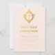Cette élégante invitation à la première communion rose et or à l'air vintage, recommandée pour une fille, a une crête florale vintage avec une croix dedans, en fausse feuille d'or. Le nom de la fille est écrit dans un élégant script calligraphique. Tout le texte peut être personnalisé et a une couleur dorée semblable à la fausse crête d'or. L'arrière - plan est rose vif. La crête florale vintage d'un ancien livre reliant, du livre "Rust, Smut Mildew & Mold", de 1870, maintenant dans le domaine public.