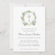 Une première invitation à la communion moderne et personnalisable avec un délicat lis de la vallée à motifs floraux entourant une croix ornée d'or, sur un arrière - plan propre avec des lettrages élégants.