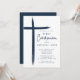 Cette invitation à la première communion bleu moderne présente un design croisé élégant, parfait pour célébrer cette étape religieuse spéciale. La palette de couleurs bleu marine en fait l'endroit idéal pour la cérémonie de la première communion d'un jeune garçon. Le design simple et sophistiqué impressionne les clients et donne le ton pour un événement mémorable.