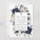 Cadre floral bleu aquarelle magnifique sur fond blanc rend cette invitation époustouflante ! Ajoutez les détails de votre fête en utilisant le formulaire de modèle. Du texte supplémentaire peut être ajouté au dos si nécessaire en utilisant la fonction Personnaliser.