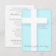Croix chrétienne blanche simple et grande avec ombre douce sur arrière - plan bleu turquoise pâle.Conception sur invitation à carte plate avec des textes pour la première communion sainte à customiser. Vous pouvez facilement modifier le texte (couleur, police, taille et position) en cliquant sur le bouton personnaliser. Les livres d'invités correspondants (couverture rigide et carnet en spirale).