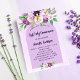 Arrière - plan violet, lavande aquarellé. Décoré de fleurs violettes et violettes aquarelles et d'une croix dorée. Personnalisez et ajoutez votre nom et vos coordonnées de réception.