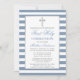 Élégante Première Sainte Communion Invitation avec Croix. Bleu et blanc poussiéreux. Croix d'argent.