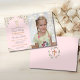 Elégante invitation florale de la Première Sainte Communion avec un charme rustique et d'inspiration vintage y compris le chalice. Le dos présente une croix de style boho ornée de délicates fleurs d'aquarelle et d'une végétation luxuriante. Personnalisez avec votre propre photo et customisez le texte pour convenir à un baptême ou un baptême, le rendant parfait pour votre occasion spéciale.