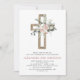 Fleur et Eucalyptus, Rose poussiéreux de la fille - Sage botanique Vert verdure Aquarelle Religieux Première (1ère) Sainte Communion Invitations.