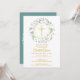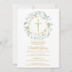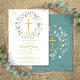 Une guirlande de verdure décorative et une croix dorée surplombent les informations de votre invitation spéciale de première sainte communion sur ce design élégant.