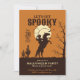 Soyons éffrayants cowboy en tête de citrouille dans l'invitation au clair de lune avec un texte personnalisable Embrassez l'esprit de fête d'Halloween avec une sillouette éffrayante d'un cavalier contre le clair de lune avec des chauves-souris volant dans l'arrière - plan, branches effrayantes et cactus du désert qui apportent l'atmosphère occidentale. Vous trouverez un modèle facile à remplir avec votre libellé. Conception et dessin de @rodicadraws.