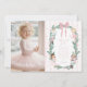 Send a magical birthday thank you card. This festive template features a dreamy Sugar Plum Fairy and Nutcracker set in a whimsical wreath, topped by a sweet coquette bow. The background uses a classic preppy stripe in pink for a nostalgic look. Easily edit this template to personalize the message!