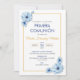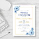Célébrez cette journée catholique avec cette élégante invitation à la première communion avec de jolies fleurs bleues. Parfait pour la première sainte communion de votre enfant. Español / Espagnol : Celebra la Primera Comunion de tu hijo o hija con esta invitacion.