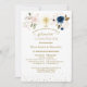 Invitación Primera Comunión de los gemelos dorados florales azules. Elegant card design featuring watercolour delicate pink and blue flowers, faux gold outlined roses, a faux gold shining cross, faux gold confetti, on a white background. Use Personalize tool to add your info. For matching items, please, visit my Elegant Baptism Christening Collection.