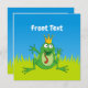 Caricature de la grenouille Prince avec couronne sur herbe verte sous ciel bleu.