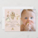 Cette invitation photo de 1er/1er anniversaire de jeune fille "Magical Day", boho et mignonne, présente une princesse féerique avec une baguette, un dragon avec une couronne, un château volant, et un chariot sur un arrière - plan rose clair. A l'envers, un arrière - plan beige rose avec des motifs de conte de fées. Personnalisez-le selon vos besoins. Vous pouvez trouver des produits correspondants dans mon magasin.