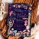 Fouettons et tournoyons ! Appelle toutes les fées ! Joignez-vous à nous pour une célébration magique de notre mère pour être! ! Avec de jolies petites fées, des champignons et des fleurs peintes en aquarelle, une forêt enchantée avec des arbres magiques et une balançoire avec une jolie police de caractères fantaisie. Baby shower parfait pour un temps magique sur bleu marine foncé.