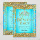 Invitation Princesse fête d'anniversaire Turquoise Blue Gold