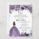Elégante Silver Purple Floral Princesse Quinceañera Quince Invitation