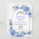 Une jolie et élégante touche moderne chic à la traditionnelle Quinceañera avec une couronne tiara princesse parties scintillant argent, avec un joli bouquet floral et botanique de couronne bleue et fleurs bleu ciel avec confetti parties scintillant gris argent et une forme arche de parties scintillant moderne, avec un élégant script typographie Quinceañera anniversaire. Ajoutez votre photo à l'arrière. parfaite fête d'anniversaire de Mis Quince avec une couronne de tiara princesse d'or rose.
