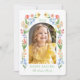 Une belle salutation de Pâques imprimée ou imprimée. Une arche de fleurs de printemps entoure votre photo préférée. Facile à personnaliser avec des éléments modèles, ou à customiser plus loin avec l'outil de conception.