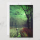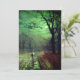 Carte présentant le tableau de John Atkinson Grimshaw, Une soirée au clair de lune (1880). Une lune fantomatique remplit le ciel nocturne de l'Angleterre victorienne tandis qu'une femme se tient debout dans une rue bordée d'arbres. Devant elle se trouve un bâtiment éclairé. Un excellent cadeau pour les amateurs de romantisme et d'Angleterre victorienne.
