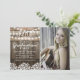 Pénétrez dans le charme rustique de la campagne avec nos invitations de fête de fin d'études. La synchronie émouvante d'un fond de baril de chêne de grange de campagne, les lumières scintillantes de guirlandes et la délicate gypsophile s'équilibrent parfaitement avec la formulation blanche contemporaine, le tout mis en scène autour d'une photo attrayante du diplômé. Célébrez cette étape avec une touche d'enchantement rural, en marquant l'année de la promotion sur ces invitations exquises.