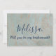 Une belle proposition de demoiselle d'honneur, cette invitation comporte un arrière - plan bleu et cuivre avec un accueil personnalisé "Serez-vous ma demoiselle d'honneur ?". Commandez dès aujourd'hui ! Conception de l'invitation : WeddingsbyRhoadie Art Design : https://www.etsy.com/shop/ClipArtBrat