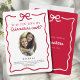 Propre, moderne et d'une élégance sans effort, cette carte de proposition de cortège de Quinceañera présente une typographie rouge audacieuse, un fond blanc uni et un nœud dessiné à la main ainsi qu'une bordure pour un look coquette tendance. C'est parfait pour une invitée d'honneur avant-gardiste qui valorise la simplicité. Facile à personnaliser avec une photo et un message spécial pour votre amie (et bientôt Dama) !