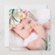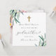 Carte de proposition de marraine botanique simple et moderne avec texte « serez-vous ma marraine » en typographie calligraphique noire. Cette proposition de parrain a un style minimaliste rustique, avec une verdure et une photo au dos de la carte.