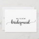 Cette simple carte de proposition de femme de chambre en calligraphie noire est parfaite pour un mariage à thème rustique ou moderne. Le design minimaliste est doté d'une police de caractères élégante et d'un coeur féminin. Le dos est vide, vous aurez donc beaucoup de place pour écrire un message personnalisé réfléchi.