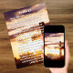 Psaume 23 invitation funéraire de la croix du lever du soleil. Une belle silhouette de couché de soleil arrière - plan avec lettrage blanc simple. Invitations de modèle de la Fête de la Vie - ces invitations peuvent être facilement personnalisées avec votre photo préférée et verset d'écriture biblique.