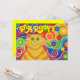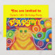 Super bébé ! Un chat rayé jaune et orange avec des fouets tourbillonnants et un arrière - plan psychédélique à motif arc-en-ciel. Invitation avec un design personnalisable jaune, orange, rouge, bleu, vert, rose, violet et blanc pour vous permettre de personnaliser avec votre propre texte, images et idées. Un dessin original numériquement crayon de couleur rehaussé par Jess Perry.