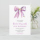Jolie invitation de fête d'anniversaire avec un ruban d'arc coquette violet. Les mots peuvent être changés en fonction de vos propres détails ou exigences
