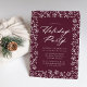 Invitation simple et élégante de fête de vacances avec une bordure de flocons blancs et branches de pin sur un arrière - plan mauve de baies. "Holiday Party" s'affiche dans un script de calligraphie blanc gras avec les détails de votre fête indiqués ci-dessous. L'invitation de fête des fêtes des fêtes des fêtes des fêtes des fêtes des fêtes des fêtes des fêtes des fêtes des fêtes des fêtes des fêtes des fêtes des fêtes des fêtes des fêtes des fêtes des fêtes des fêtes des fêtes des fêtes des fêtes des fêtes des fêtes des fêtes des fêtes des fêtes des fêtes des fêtes des fêtes des neiges se fait.
