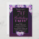 Un noir avec violet et rose floral 70ème anniversaire invitation fête.
